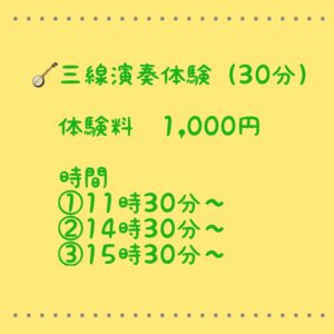 ※両日 解説コーナーもありますので、三線演奏体験の時間帯を変更しました。