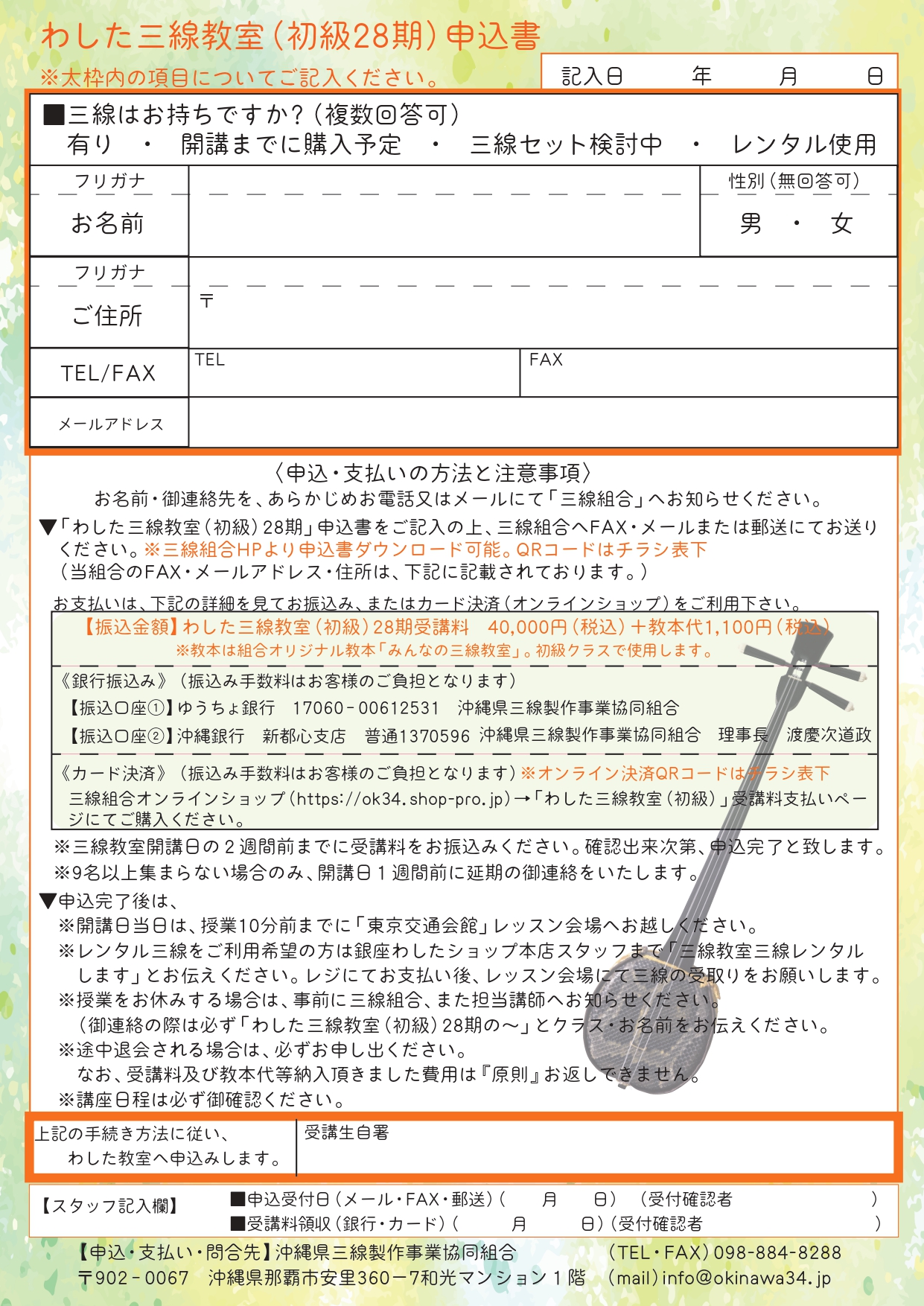 以下よりPDFのお申込書がダウンロード可能です。ご記入いただき、三線組合へメール(写メOK)またはFAXにてお送りください。